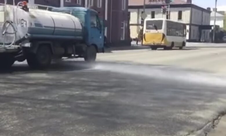 Коммуналдық қызметтер жолдарды, тротуарларды, жол жиектерін, бетон қоршауларды және көпір қоршауларын, аялдама павильондарын, қоқыс жәшіктерін шаңнан тазарту, сондай-ақ ашық аумақтарды санитарлық тазалау жұмыстарын жүргізуде.